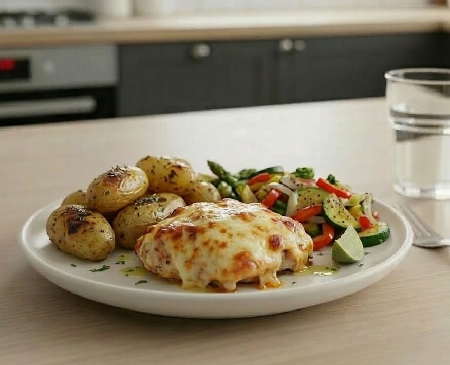 POLLO GRATINADO CON PAPINES AL HORNO