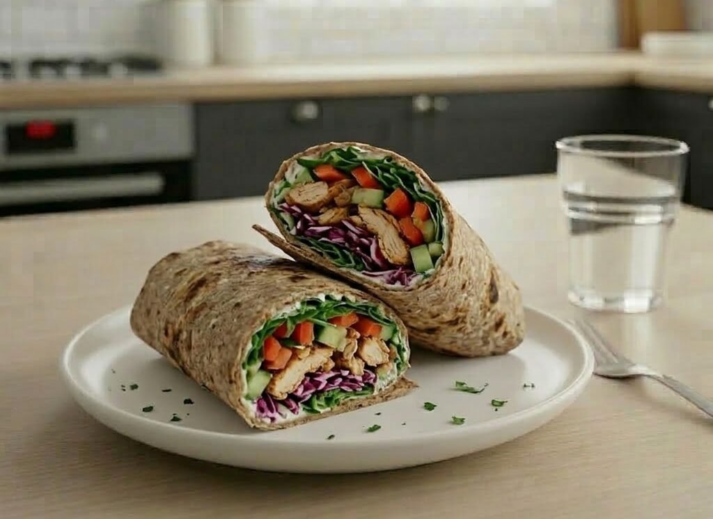 WRAP DE VERDURAS Y POLLO CON TORTILLA INTEGRAL CASERA